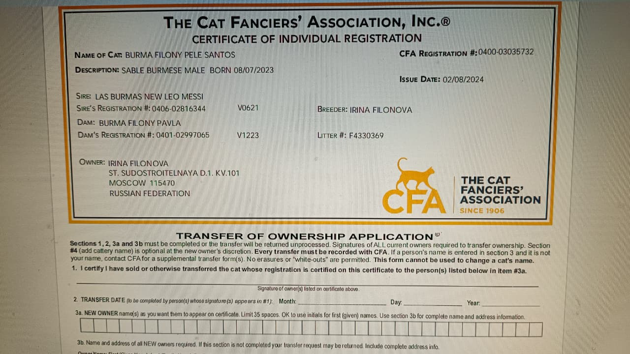Настоящая Грин карта (регистрация котёка) выглядит только так а не иначе. И получить её можно только онлайн платно регистрируя котёнка в американской системе CFA которая находится только в Америки и только там. Других вариантов просто не существует.