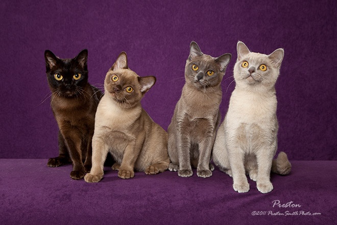 Особняком стоит красная бурма. Ее сияющий мех имеет цвет светлого мандарина. В таком окрасе животное выглядит абсолютно неземным.