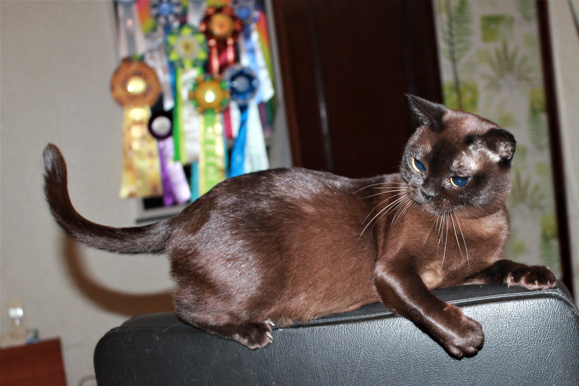 Аиша моя первая кошка которая приехала ко мне из Канады . Аишенька является ярким представителем породы американской традиционной бурмы и носителем интересных и редких племенных линий . Аккуратная, миниатюрная, отличные яркие огромные глаза. Шикарный окрас, великолепный темперамент. Совершенно очаровательная кошечка с доброй душой. Она была учителем моего питомника. Все кошки её прекрасно слушались. Аиша прекрасно вписалась в мою племенную работу питомника. Она подарила мне очень много прекрасных котят которые разъехались по всему миру. Произ водители от этой кошки живут на Филиппинах, Украине, России. А так же у меня в питомнике остались Джуди . Это моя любимица! Спасибо заводчику из Канады JUDITH-RUSSEL SEEBER за такую шикарную девочку. Сейчас Аиша живёт в прекрасной семье у Виктории в Красногорске.